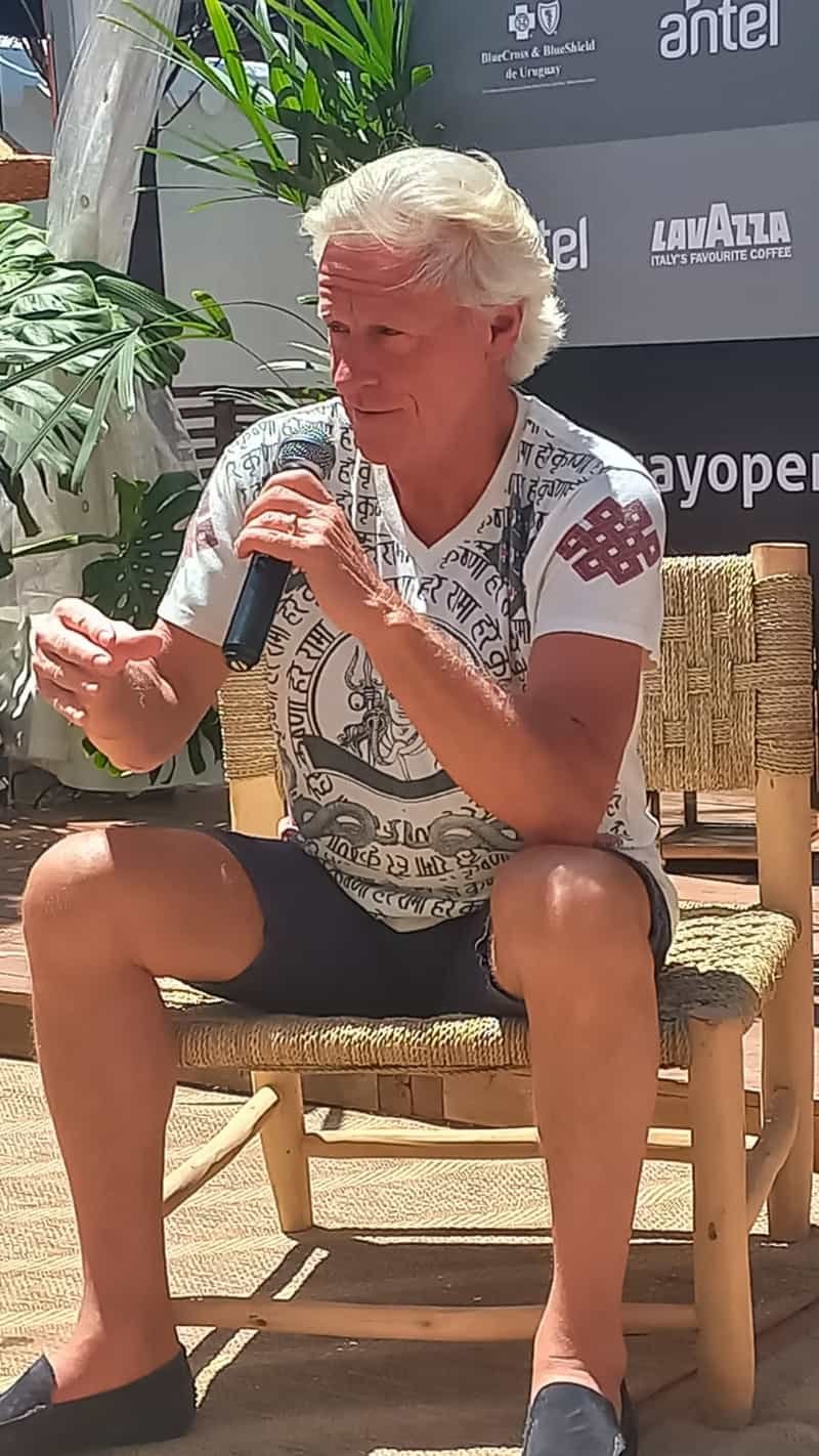 El gran tenista sueco Bjorn Borg irrumpió en Montevideo siguiendo a su hijo Leo que disputará el Uruguay Open gracias a una invitación del torneo. Muy cómodo pese al calor contesto algunas preguntas del deporte que lo tuvo como su Rey.